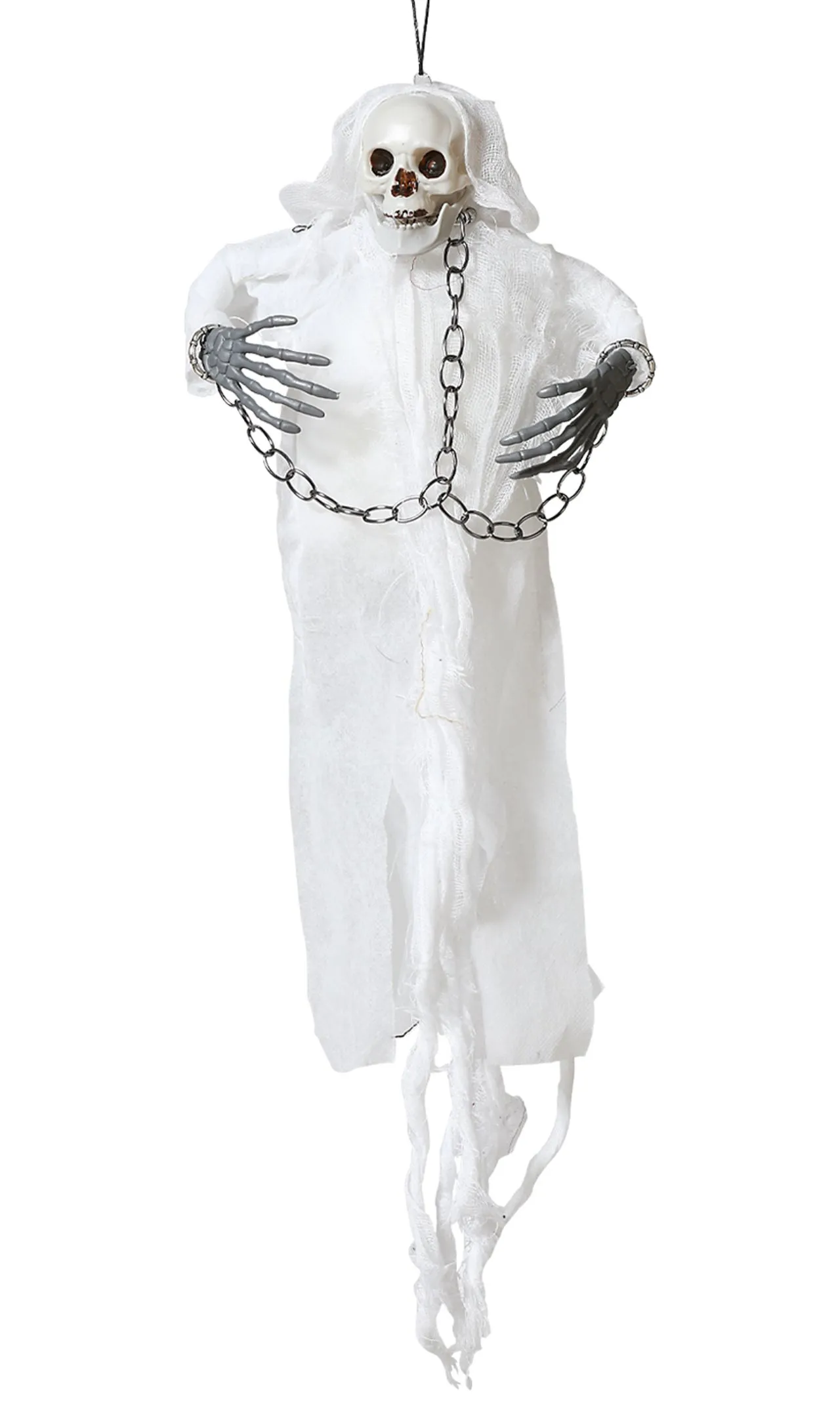 Angeketteter Skelett-Anhänger, um Ihre Themenpartys zu feiern. Wir haben einen breiten Katalog an Dekorationsartikeln für jede Feier: Anhänger, Girlanden, Tischdekorationen, Konfetti, Fototermine usw. Dekoration für Geburtstagsfeiern, Halloween, Junggesellenabschiede und Themenpartys.