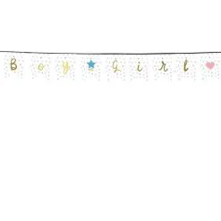 Baby-Geschlecht offenbaren Girlande um deine Themenpartys zu feiern. Wir haben einen breiten Katalog an Dekorationsartikeln für jede Feier: Anhänger, Girlanden, Tischdekorationen, Konfetti, Fototermine usw. Dekoration für Geburtstagsfeiern, Halloween, Abschiedsfeiern und Mottopartys.