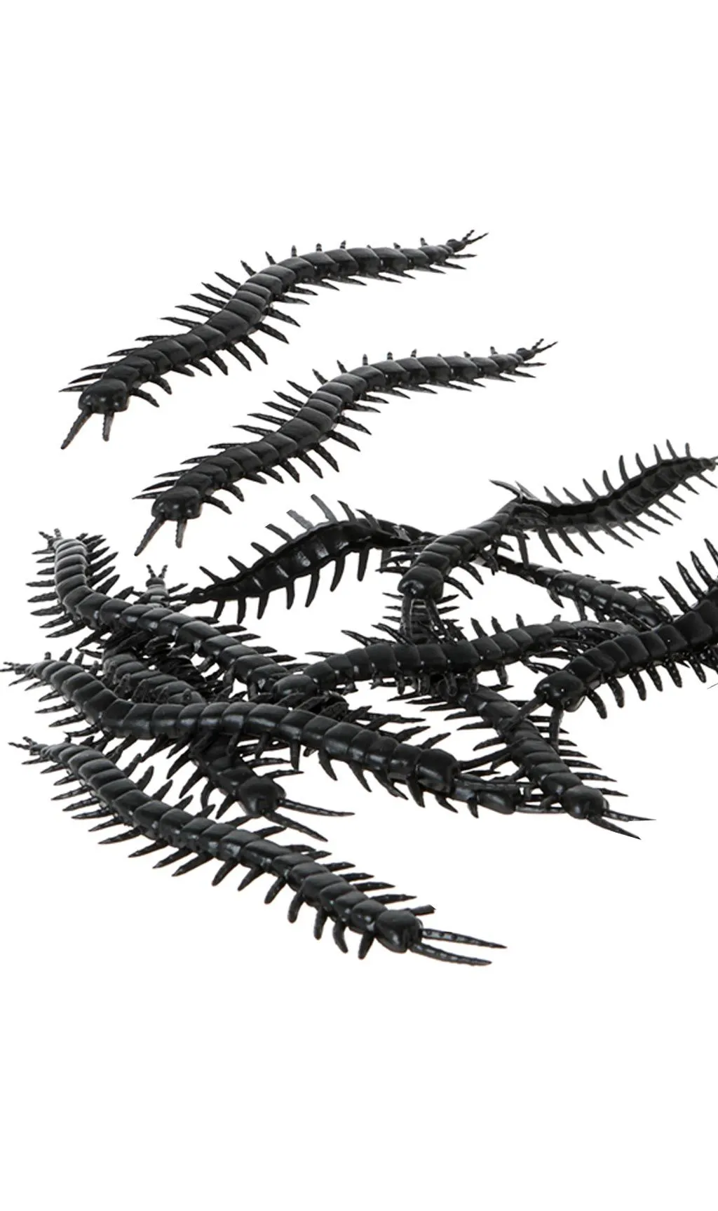 Hundertfüßer! Mit diesem Beutel mit 12 Spinnenläufer wirst Du eine gruselige Atmosphäre in der Nacht der Toten erreichen. Sie sind auch ideal für lustige Spiele und um Witze an Karneval Feste zu machen.