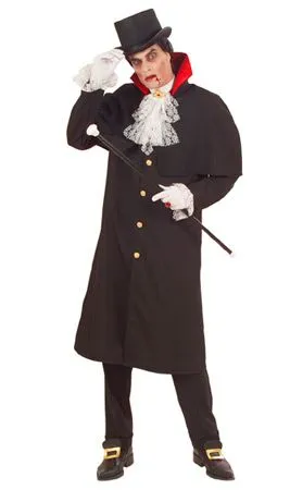 Der elegante Horror! Dieses Dracula-Kostüm mit Mantel für Herren verleiht Ihnen an Halloween oder Karneval eine ganz besondere Klasse. Um Graf der Wesen der Nacht zu sein, müssen Sie perfekt auf Ihr Aussehen achten; äußerst wichtig, um all ‘die schönen und appetitanregenden Hälse an Ihren Mund zu locken…mit diesem Kostüm wird Ihr Durst garantiert gelöscht, weil sich keiner Ihren Reizen erwehren kann.