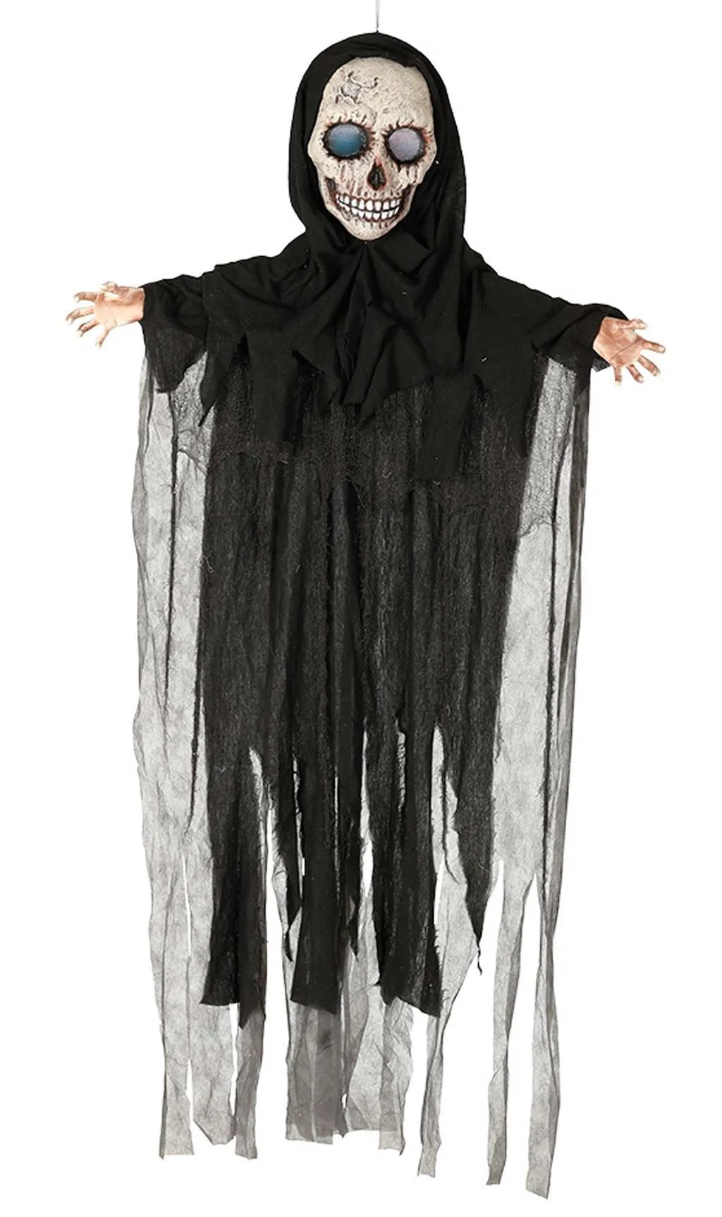 Dunkler Totenkopf Hängedeko für Halloween und Skelett Party. Mit deinem Horrorkostüm und das passende Kostümzubehör wirst du wie ein echtes Skelett aussehen, wähle dein eigenes und mache deine Online-Bestellung von Originalkostümen.