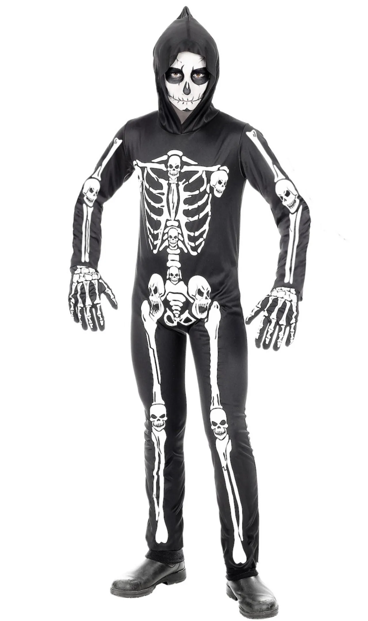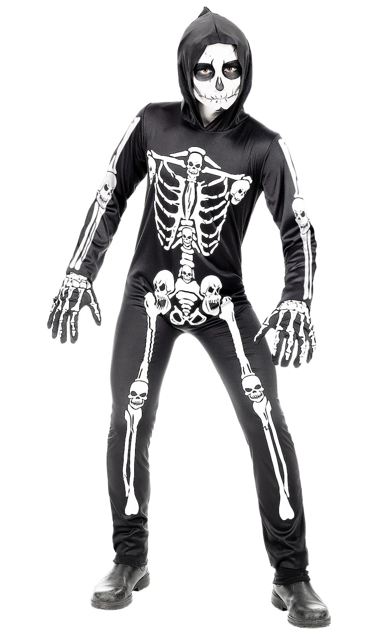 Finsteres Skelett Kostüm für Kinder für Halloween und Skelett Party. Mit unserem Horror Kostüme wirst du die bösen Geister in der Nacht der Toten vertreiben können, wähle dein Skelett Kostüm. Jetzt originelle Kostüme online bestellen mit den besten Online Service und mit Rückgaberecht.