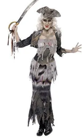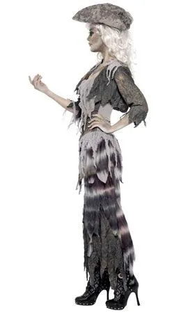 Segeln ohne Kurs! Mit diesem Geister-Piratin-Kostüm mit Mieder für Damen werden Sie die sexieste Zombie-Freibeuterin in der Nacht von Halloween sein. Seien Sie bereit, um sich der Geisterbesatzung der Piraten der Karibik anzuschließen und gehen Sie an Bord von Karnevalpartys oder Junggesellinnenabschieden.