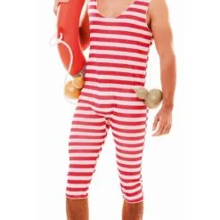 Ab ins Wasser! Kehren Sie zurück in andere Zeiten mit diesem rot gestreiften Badeanzug-Kostüm für Herren. Stürzen Sie sich in die Fluten und schwimmen Sie mit Ihrem Schwimmring zur nächsten Halloween-, Karnevals- oder Themenparty, um mit Ihrem Sommerlook alle zum Lachen zu bringen.