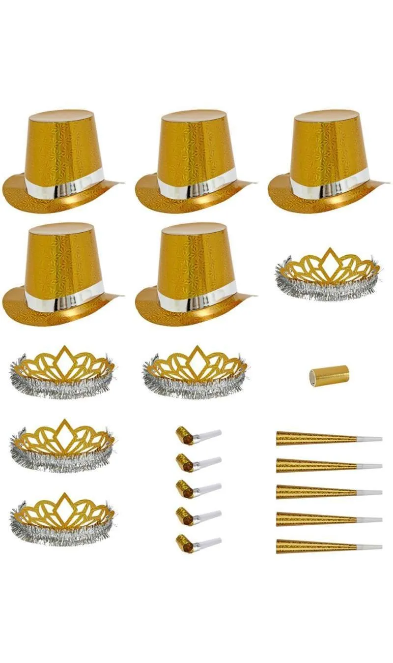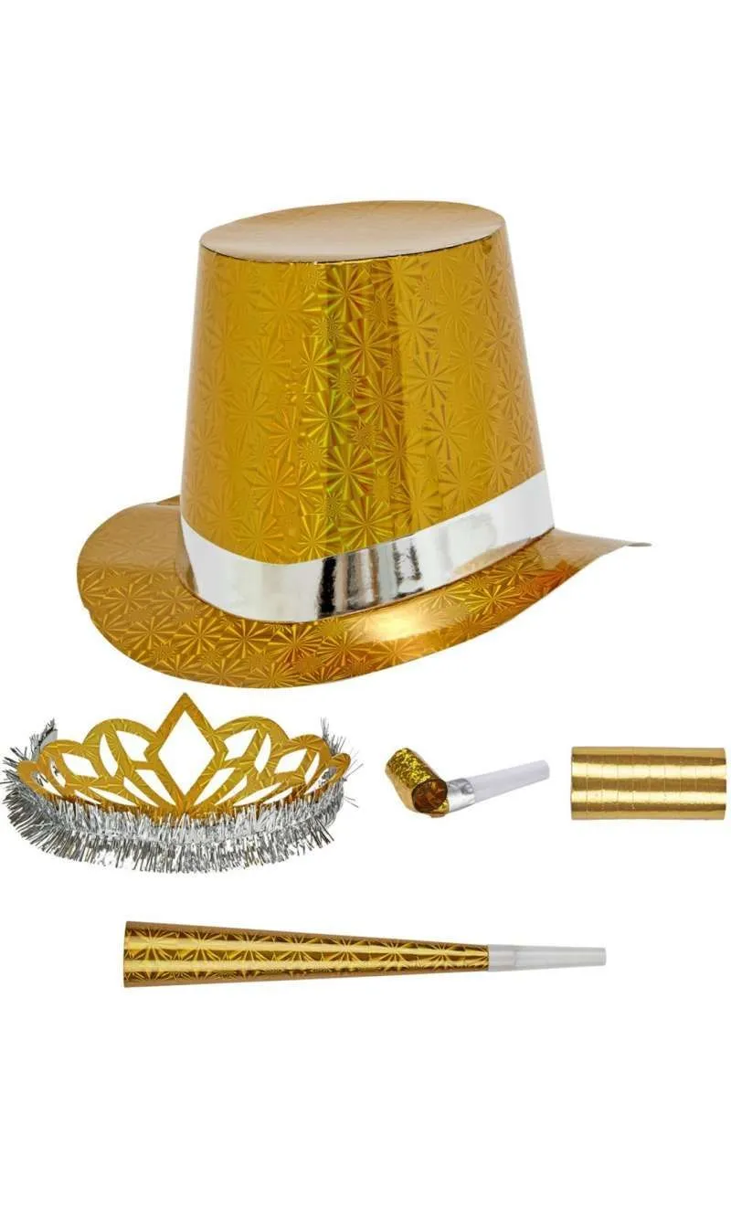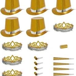 Partyset! In diesem Partyset in gold finden Sie alles, was man zum Lachen und für die gute Laune auf Kostümpartys, besonderen Events wie Geburtstagen, Silvester, Junggesellenabschieden oder im Karneval braucht.
