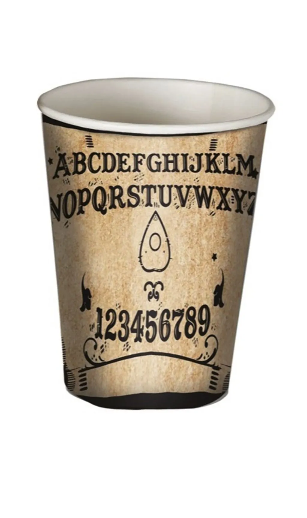 Halloween-Ouija-Becher um deine Themenpartys zu feiern. Wir haben einen breiten Katalog an Dekorationsartikeln für jede Feier: Anhänger, Girlanden, Tischdekorationen, Konfetti, Fototermine usw. Dekoration für Geburtstagsfeiern, Halloween, Abschiedsfeiern und Mottopartys.