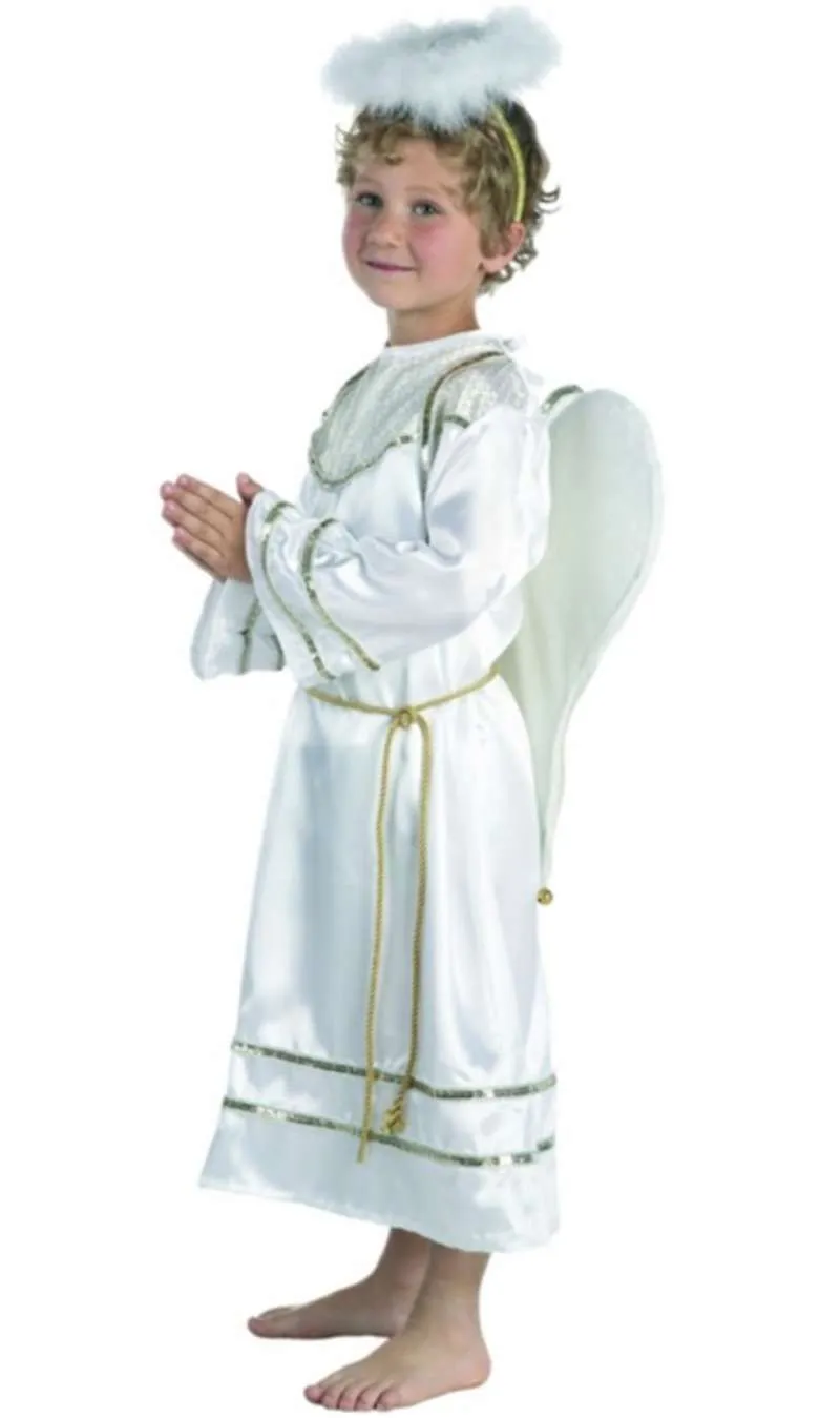 Die kleinsten werden an Weihnachtskrippen mit diesem langem, mit weißen Flügeln und Engelskrone, Kostüm unter dem Stern von Bethlehem funkeln.