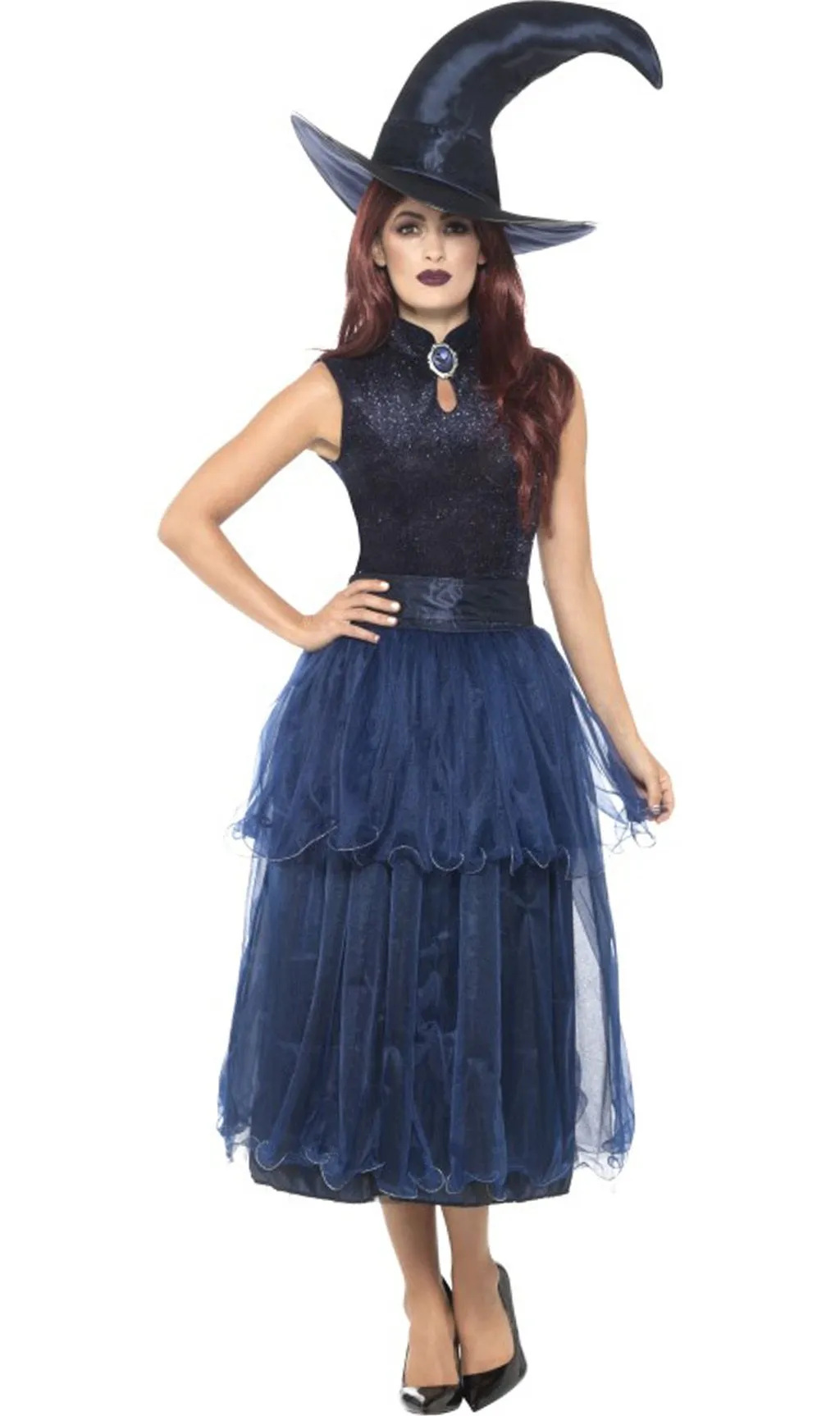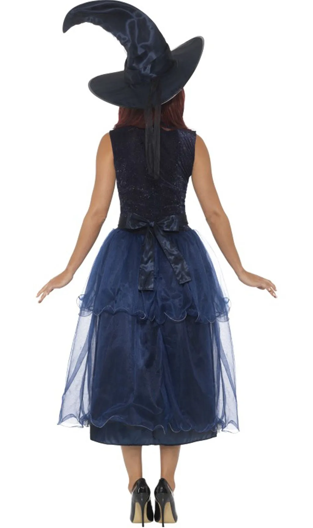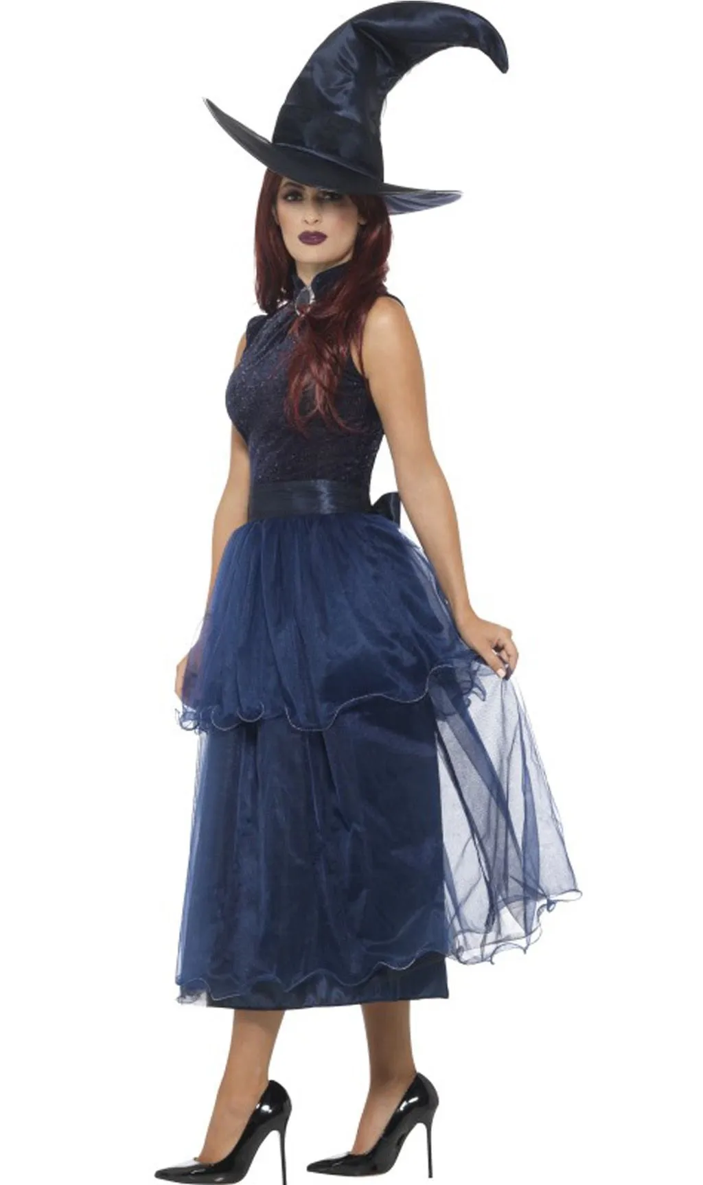 Mit diesem Mitternachtshexe Kostüm für Damen kannst du dich in die gute oder grausame Zauberin verwandeln. Du wirst durch die Halloween Nacht, Karneval und Fasching sehr stillvoll fliegen können.