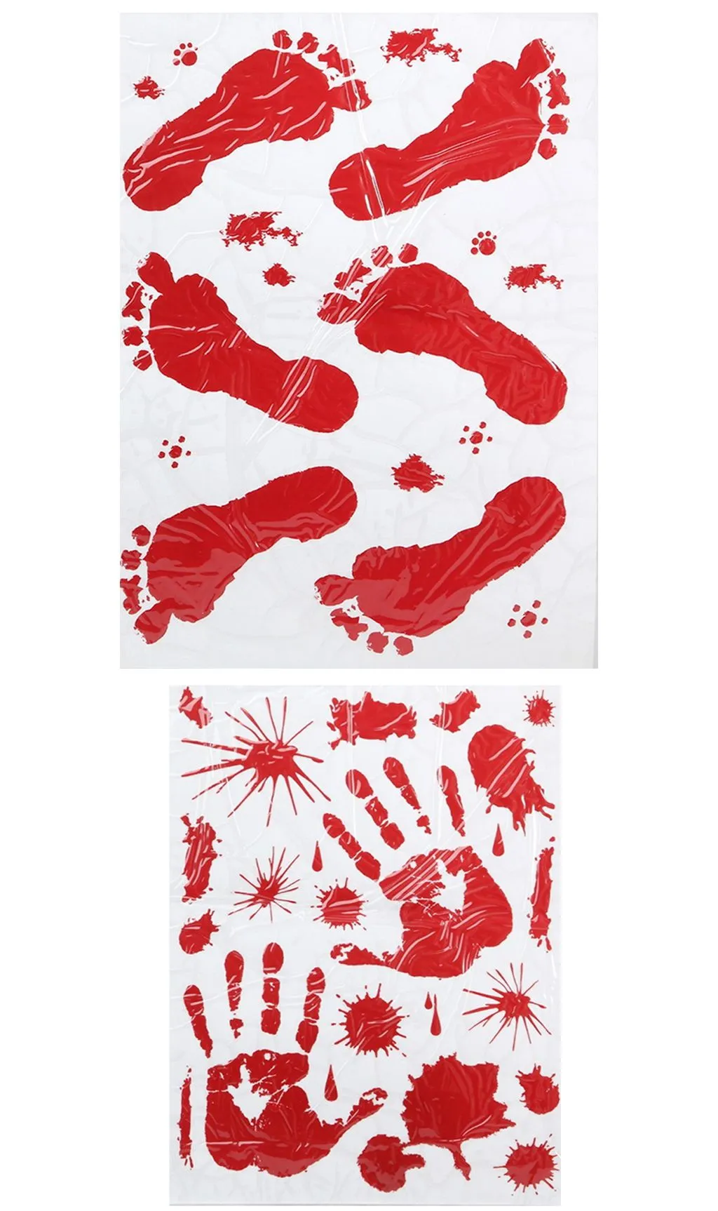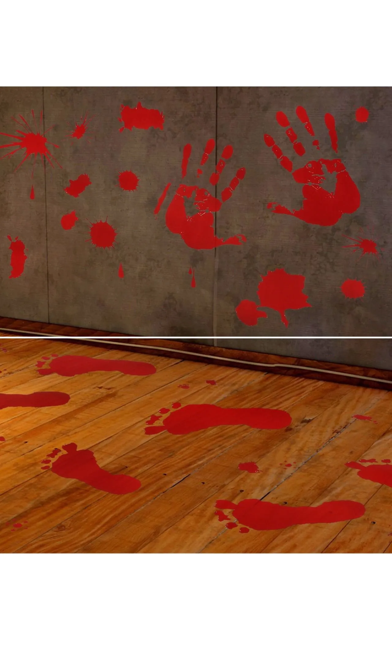 Pack 2 Bloody Footprints Dekoration, um Ihre Themenpartys zu feiern. Wir haben einen großen Katalog an Dekorationsartikeln für jede Feier: Anhänger, Girlanden, Tischdekorationen, Konfetti, Fototermine usw. Dekoration für Geburtstagsfeiern, Halloween, Junggesellenabschiede und Mottopartys.