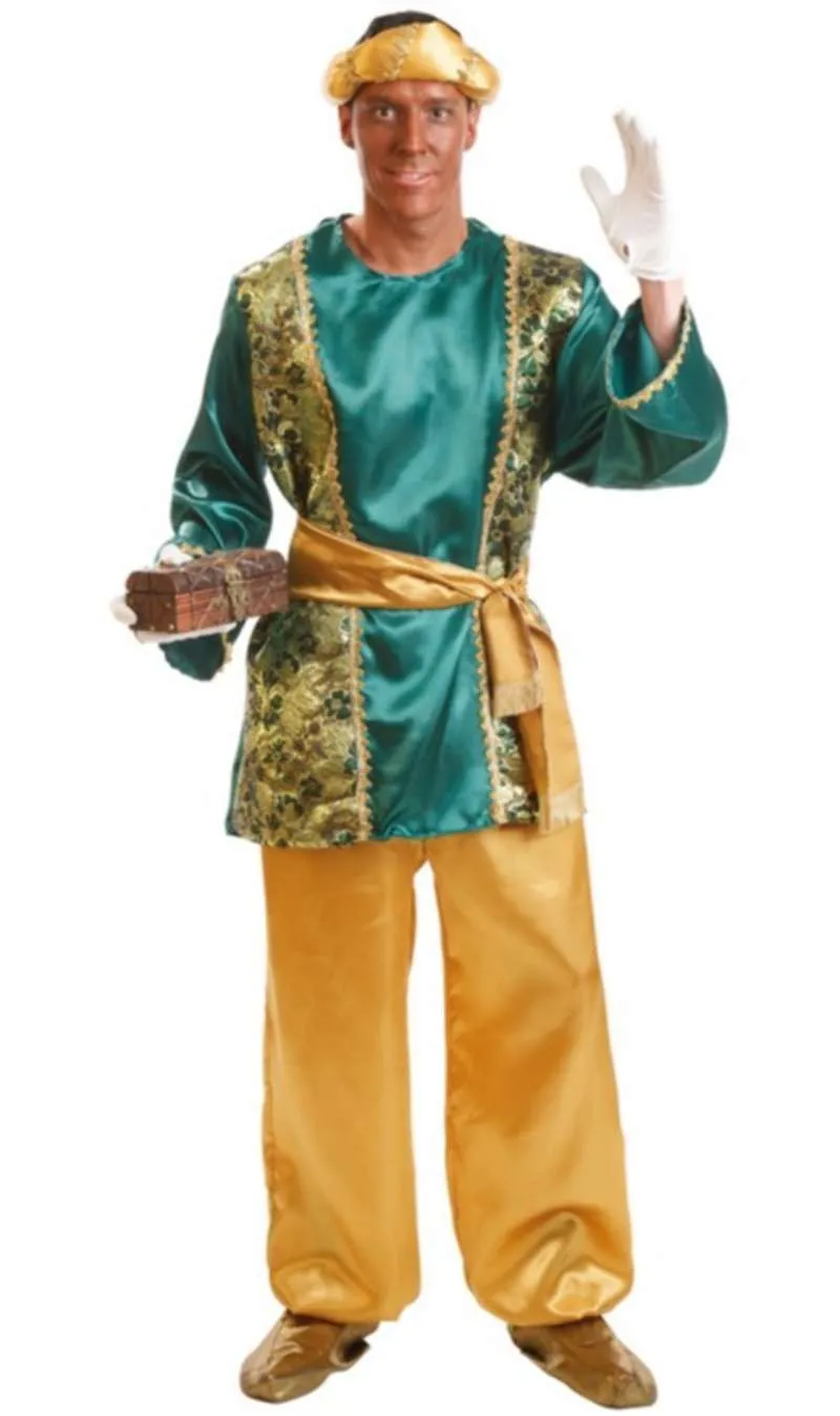 Araber von Kopf bis Fuß! Dieses Balthasar Pagen-Kostüm für Erwachsene verwandelt Sie in einen arabischen Prinzen der Diebe oder einen perfekten Knappen des Königs Balthasar, der jederzeit bereit ist, diesem bei Umzügen, Drei-Königs-Umzügen und Weihnachtsthemenfesten zur Seite zu stehen.