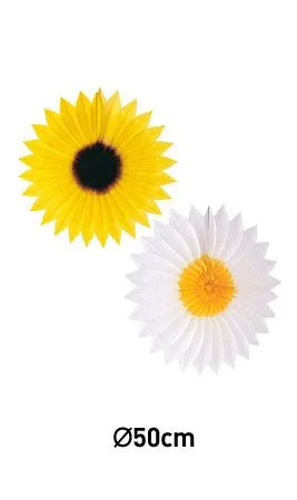 Blumenfest! Mit diesem originellen Set mit Blumenrosetten in Form von Gänseblümchen und Sonnenblumen aus Papier wird der Frühling auf Ihren Partys einziehen. Dekorieren Sie Flower Power-, Themen– oder Karnevalspartys mit allen Farben des Frühlings oder des Sommers.