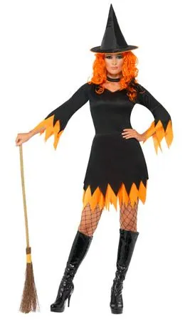 Zauberei – eins, zwei, drei! Mit diesem orangefarbenen Hexenkostüm sind Sie eine gefährliche Rothaarige. Alle Ihre Hexenkolleginnen werden auf Halloween- oder Karnevalspartys vor Neid im Erdboden versinken, wenn Sie mit diesem sexy Kostüm eintreffen.