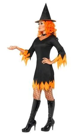 Mehr information zu Sexy, orangefarbenes Hexenkostüm für Damen