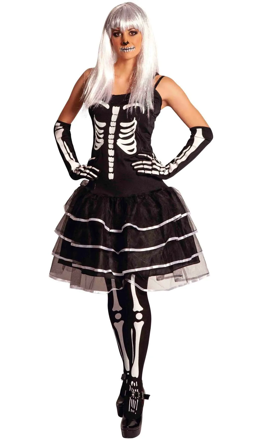 Skelett Elegant Kostüm für Damen für Halloween und Skelett Party. Mit unserem Horror Kostüme wirst du die bösen Geister in der Nacht der Toten vertreiben können, wähle dein Skelett Kostüm. Jetzt originelle Kostüme online bestellen mit den besten Online Service und mit Rückgaberecht.