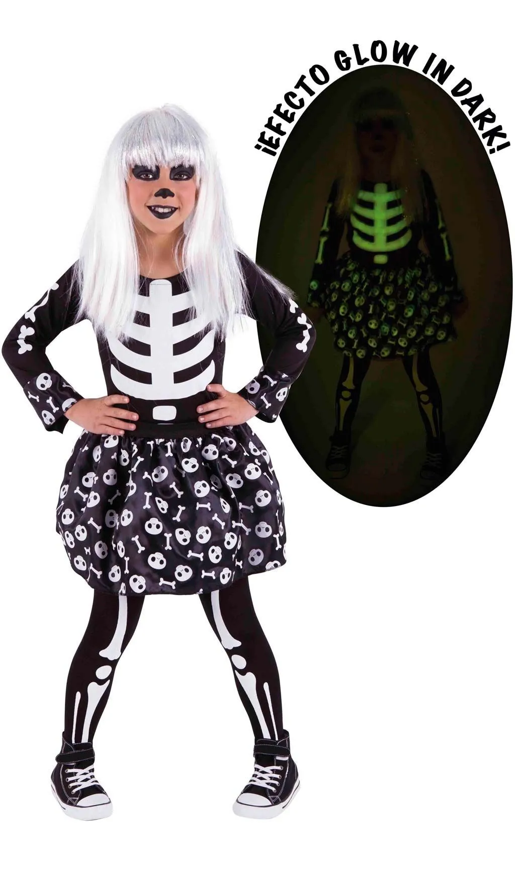 Skelett Glow Kostüm für Mädchen für Halloween und Skelett Party. Mit unserem Horror Kostüme wirst du die bösen Geister in der Nacht der Toten vertreiben können, wähle dein Skelett Kostüm. Jetzt originelle Kostüme online bestellen mit den besten Online Service und mit Rückgaberecht.