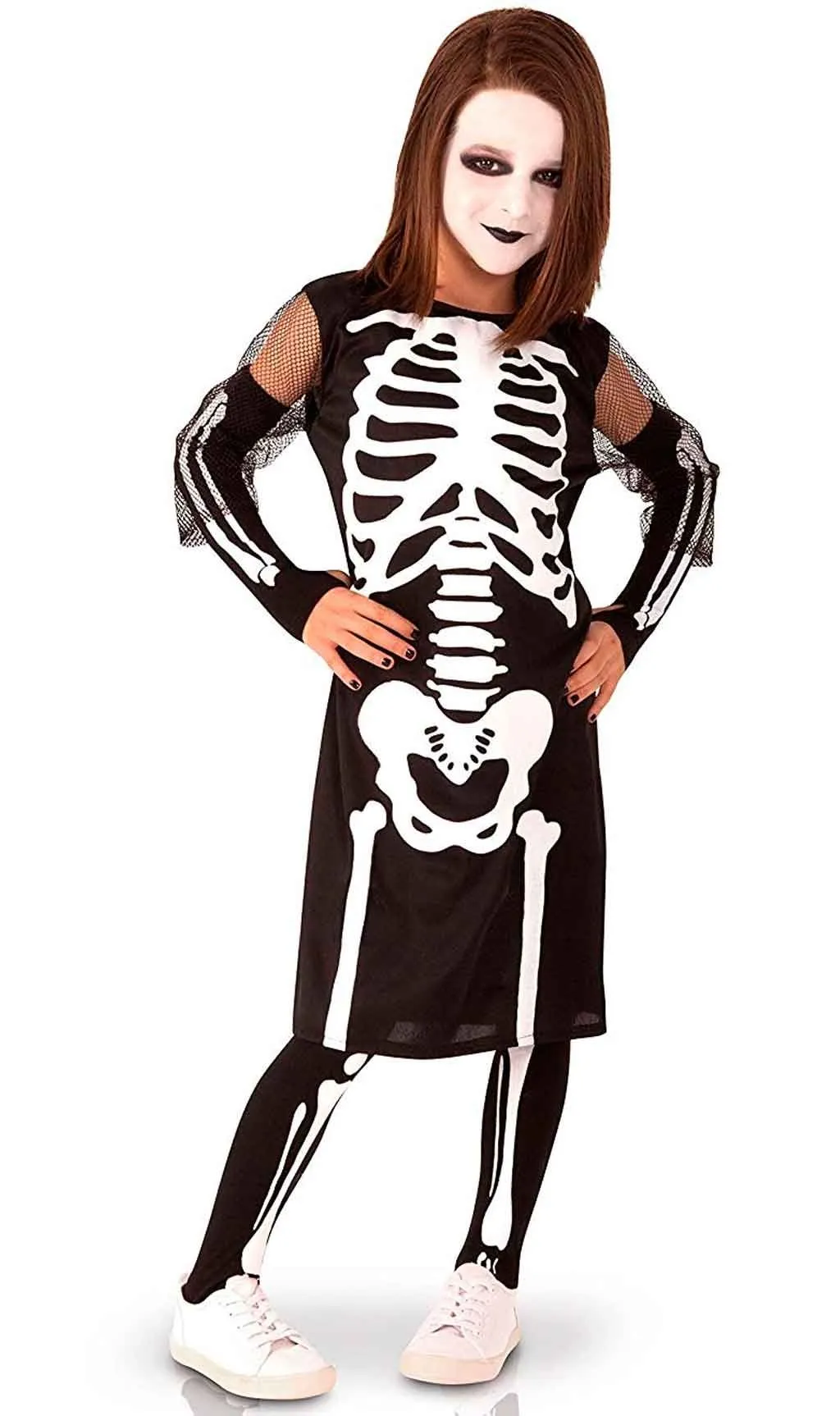Mehr information zu Skelett Kleid Kostüm für Mädchen
