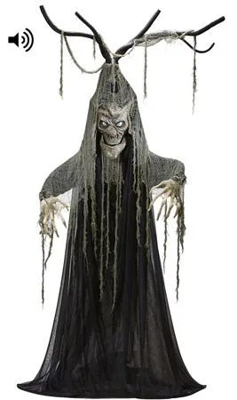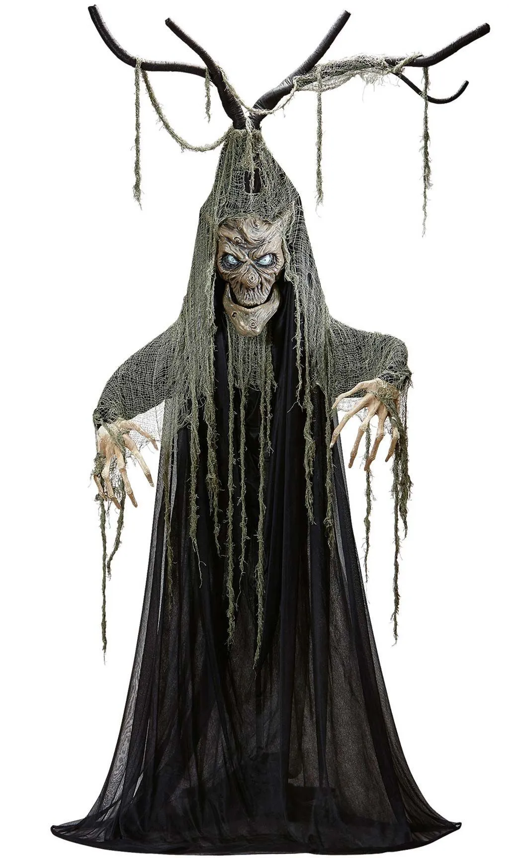 Verhexter Baum! Überrasche jedem mit diesen spukenden Halloween Baum in deine nächsten schrecklichen Horrorpartys. Mit dem Licht, die aus den Augen herauskommen, wird dieses Accessoire sich in die Hauptattraktion von Zombies und Geister verwandeln.