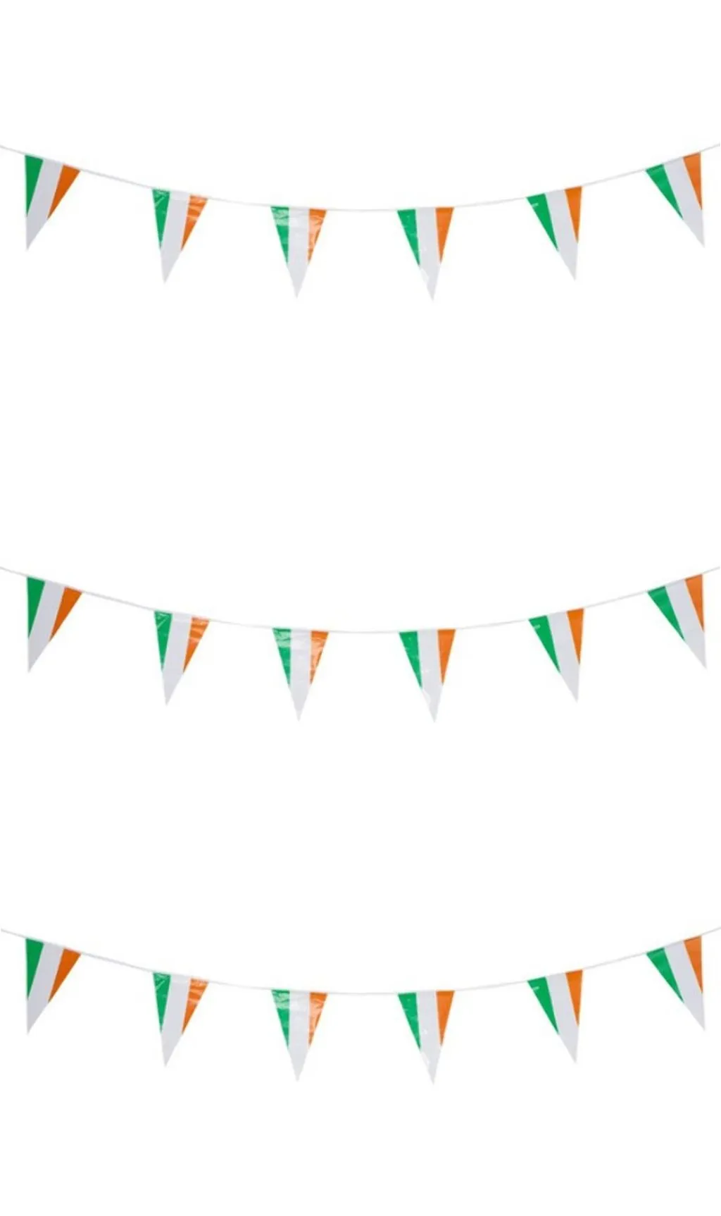 Girlande Saint Patrick Triangles, um Ihre Themenpartys zu feiern. Wir haben einen großen Katalog an Dekorationsartikeln für jede Feier: Anhänger, Girlanden, Tischdekorationen, Konfetti, Fototermine usw. Dekoration für Geburtstagsfeiern, Halloween, Junggesellenabschiede und Mottopartys.