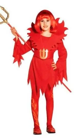 Die kindlichen Kostüme als Teufelinnen oder Dämonen sind eine gute Option für Halloween und Horrorpartys. Die Mädchen werden es genießen den Dreizack den Toten, Gespenster und Zombies zu zeigen.