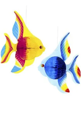 Meerestier! Das bunte tropische Wabenfische Set, ist ideal für Hawaii Feste. Die Dekoaccessoires aus unseren Karneval Katalog, sind aus verschiedenen Materialien, in diesem Fall sind sie aus Wabe-papier gemacht.