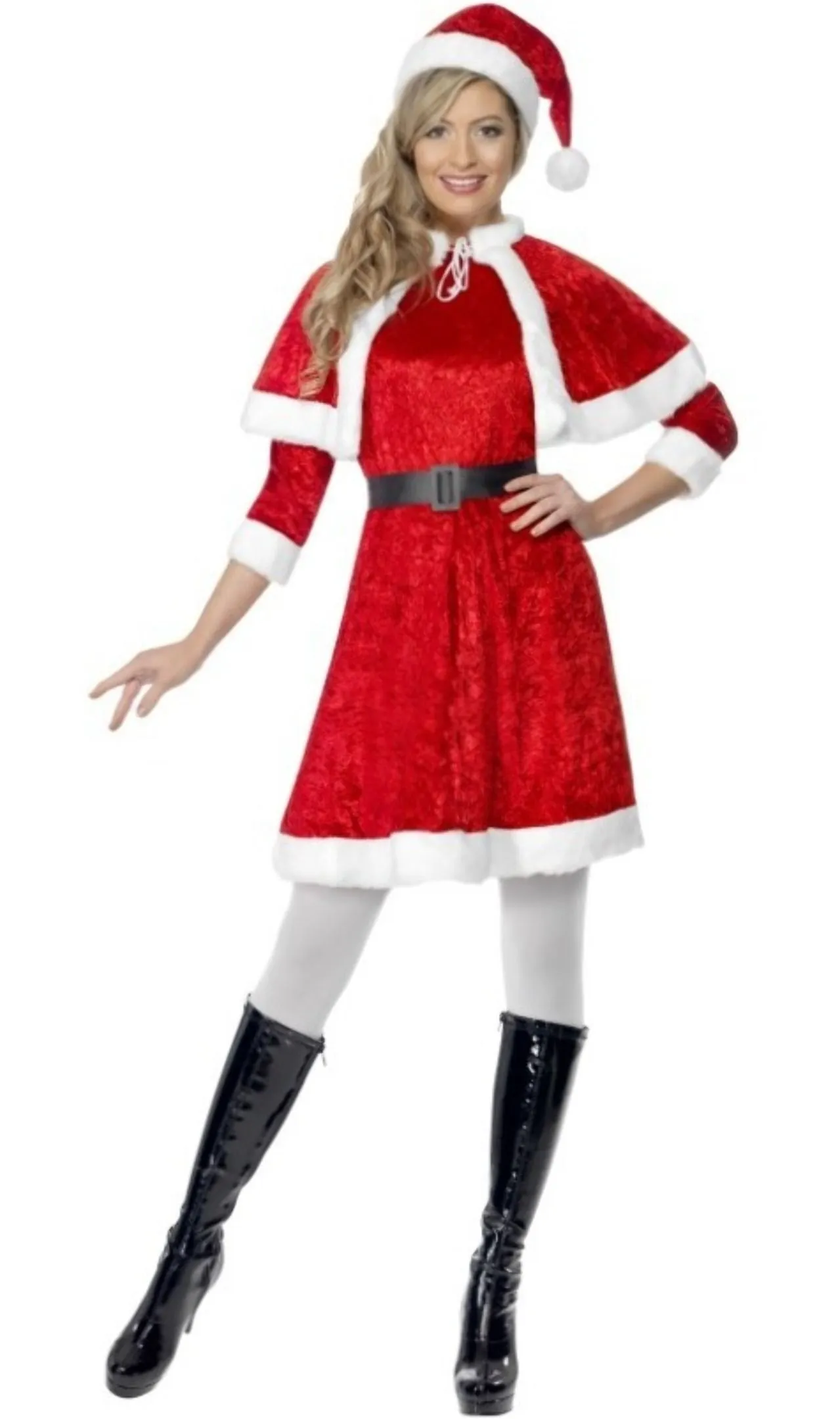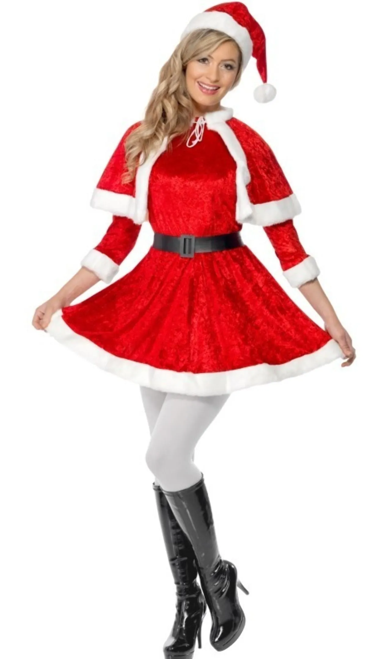 Weihnachtsfrau mit Cape Kostüm für Damen für Weihnachten. An Heiligabend kannst du dich nun als Weihnachtsmann oder Weihnachtsfrau verkleiden und deinen Weihnachtssack voller Hoffnung füllen. Entdecke in unseren Shop-Online originelle Kostüme. Wähle deinem Weihnachtskostüm für diese liebenswerten Feiertage, gebe deine Bestellung jetzt auf. Sicherer Online-Einkauf und Rückgaberecht.